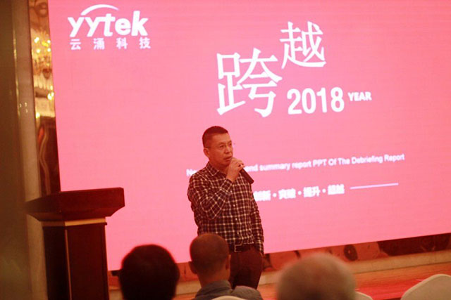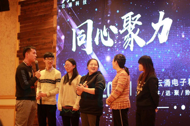 下午四點公司在泰州鵬欣大酒店隆重舉行了2019年云涌科技年會,年會主題為"同心聚力,共創未來"。公司董事長高南在會議中總結了過去一年的輝煌成績,同時謀劃了未來云涌科技的技術及產品方向。