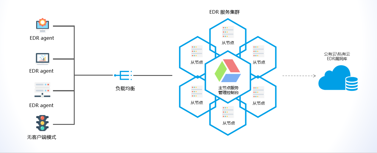 云涌終端安全檢測與響應平臺,由部署到終端負責收集上報數據的代理程序、以及負責數據分析、展示及響應的中心服務組成。