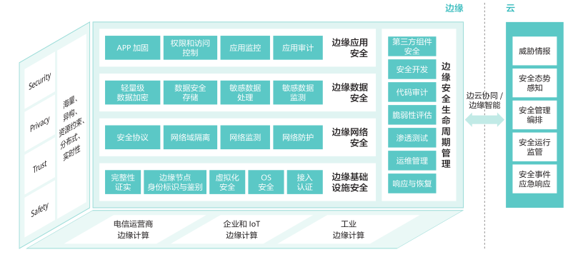 邊緣安全是邊緣計算的重要保障。邊緣安全涉及跨越云計算和邊緣計算縱深的安全防護體系,只有增強邊緣基礎設施、網絡、應用、數據識別和抵抗各種安全威脅的能力,才能為邊緣計算產業的發展構建安全可信環境。邊緣安全的核心價值體現在可以提供可信的基礎設施:主要包括計算、網絡、存儲類的物理資源和虛擬資源。基礎設施是包含路徑、數據交互和處理模型的平臺面,可以應對鏡像篡改、DDoS 攻擊、非授權通信訪問、端口入侵等安全威脅。