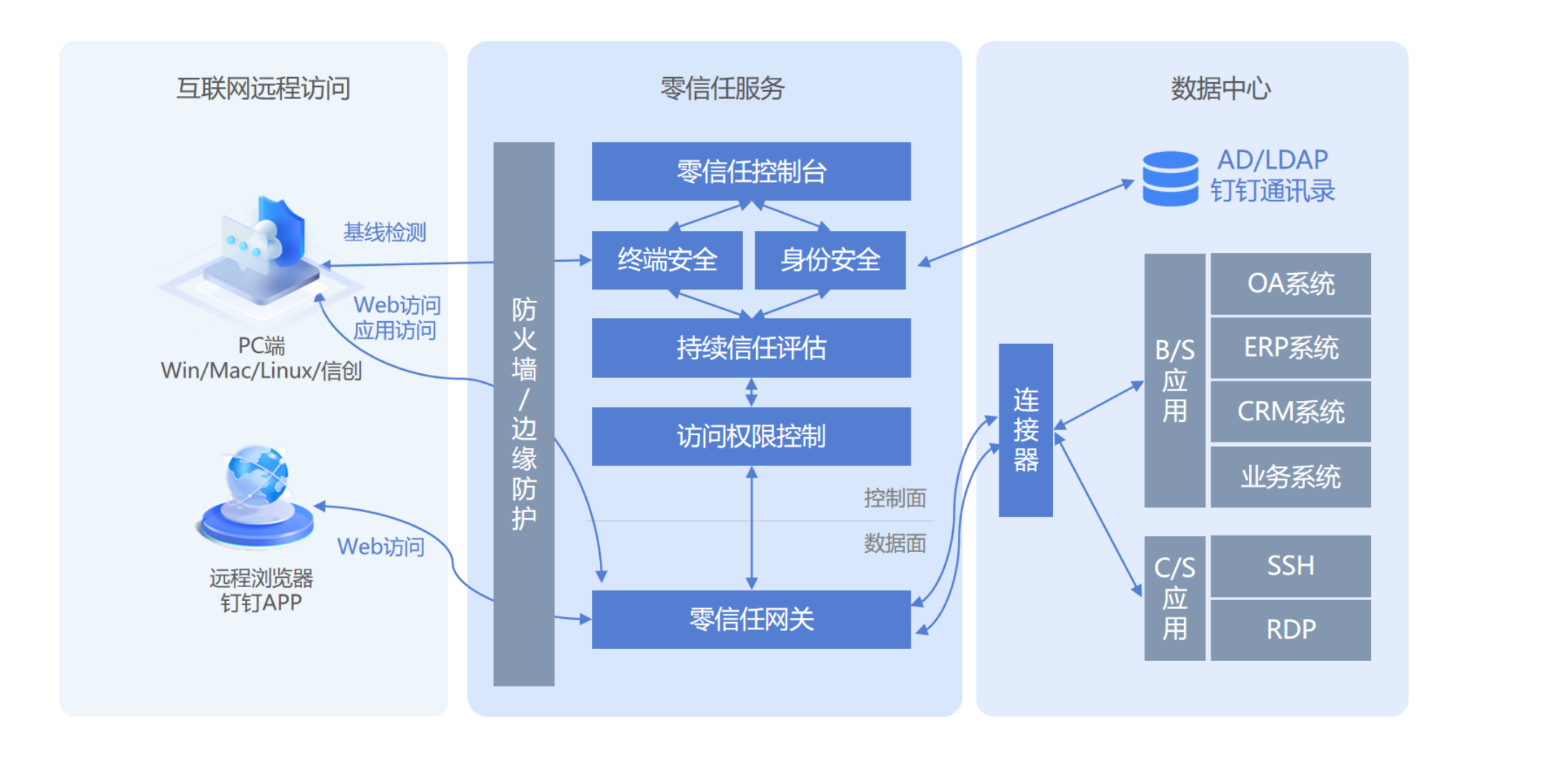 ? ? ? 隨著互聯(lián)網(wǎng)時代的快速發(fā)展,APT攻擊、DDoS攻擊等網(wǎng)絡(luò)安全問題頻發(fā)。近月來,我司接連收到海陵區(qū)公安局網(wǎng)安部門發(fā)來的網(wǎng)絡(luò)安全漏洞通報,在經(jīng)過綜合分析和評估后,決定采用零信任安全解決方案,以此來強(qiáng)化網(wǎng)絡(luò)安全隱患排查整改,推動以攻促防,查漏補(bǔ)缺。?