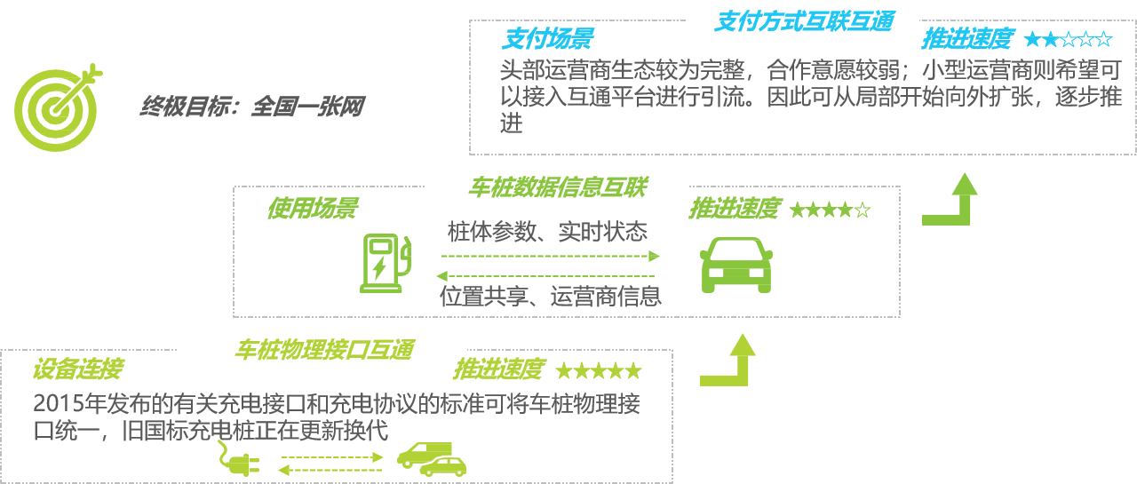 互聯(lián)互通成為行業(yè)共識:由于利益分配問題支付互通短期內(nèi)阻礙較大,行業(yè)實現(xiàn)電動汽車、充電樁、運營商三方之間的互聯(lián)互通,可有效解決這一難題,通過信息數(shù)據(jù)的分析充分提高單樁充電設(shè)施的利用效率。