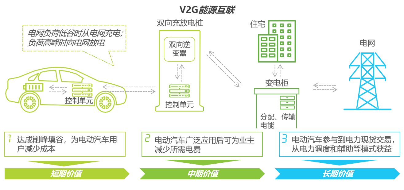 ?V2G模式試點正在進行:V2G可達成車輛與電網(wǎng)之間的能源互聯(lián),實現(xiàn)儲能調(diào)峰、改善電能質(zhì)量、調(diào)整用電負荷等服務(wù),將成為未來的長期發(fā)展方向。